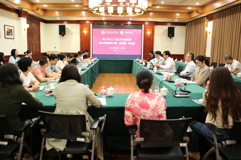 10月16日,世界中國學研究所黨支部、黨委宣傳部黨支部、信息化辦公室黨支部、行政處黨支部及資產公司黨支部開展聯(lián)學活動,專題學習黨的二十屆三中全會精神。副院長吳雪明以“深入學習二十屆三中全會精神 樹立正確的權力觀、政績觀、事業(yè)觀”為題,講授專題黨課。世界中國學研究所所長、支部書記沈桂龍主持會議。