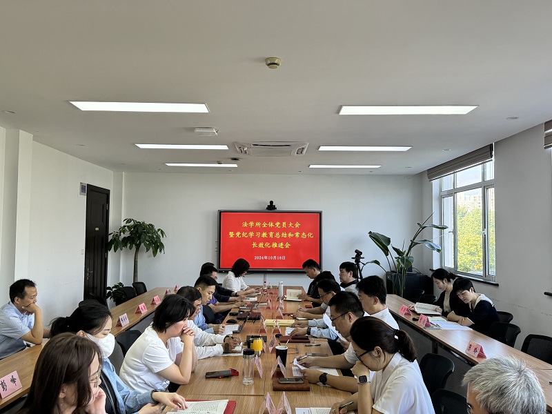 10月18日上午,法學所黨總支召開全體黨員會議,根據(jù)院黨紀學習教育有關(guān)部署要求,總結(jié)法學所黨紀學習教育開展情況,部署推進黨紀學習教育常態(tài)化長效化工作。院黨委副書記,法學所黨總支書記、所長姚建龍主持會議并作總結(jié)講話。