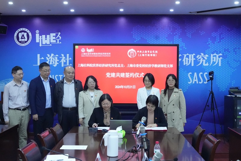 隨后,在世經(jīng)所全體黨員和上海市委黨校經(jīng)濟(jì)學(xué)教研部黨支部黨員代表的見證下,趙蓓文與唐玨嵐代表雙方簽署了黨建共建協(xié)議書。