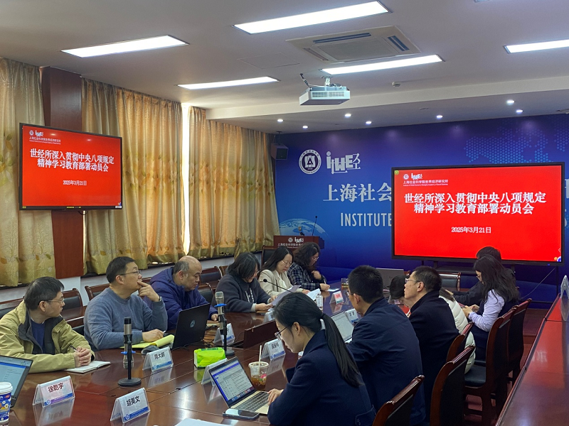 3月21日下午,世界經(jīng)濟(jì)研究所在478會(huì)議室召開(kāi)黨總支委員會(huì)擴(kuò)大會(huì)議,學(xué)習(xí)習(xí)近平總書(shū)記關(guān)于深入貫徹中央八項(xiàng)規(guī)定精神學(xué)習(xí)教育的重要講話和重要指示精神,傳達(dá)學(xué)習(xí)中央、市委黨的建設(shè)工作領(lǐng)導(dǎo)小組和院黨委等有關(guān)會(huì)議精神,部署推進(jìn)世經(jīng)所深入貫徹中央八項(xiàng)規(guī)定精神學(xué)習(xí)教育工作。黨總支書(shū)記、副所長(zhǎng)(主持工作)趙蓓文研究員主持會(huì)議并講話。
