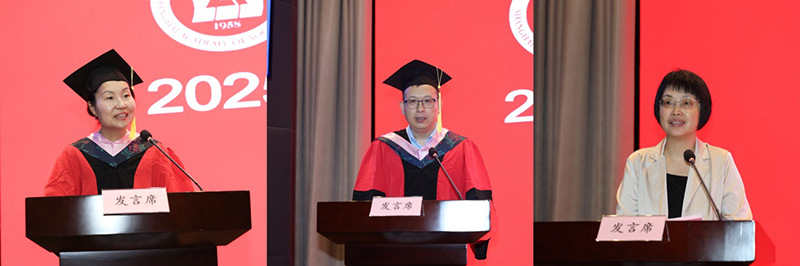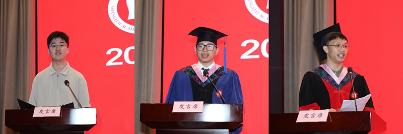 在代表發(fā)言中,博士生導(dǎo)師代表、世界經(jīng)濟(jì)研究所黃燁菁從三個(gè)“心”出發(fā)與全體畢業(yè)生共勉:對學(xué)術(shù)規(guī)范的敬畏之心、面對挫折的自我重建之心以及動(dòng)態(tài)平衡之心;碩士生導(dǎo)師代表、應(yīng)用經(jīng)濟(jì)研究所鄭世卿寄語全體畢業(yè)生要保持學(xué)習(xí),開卷有益,要保持熱愛,奔赴山海,要持少年氣,懷天下志;校友代表、中共上海市委黨校經(jīng)濟(jì)學(xué)教研部主任,我院2006屆政治經(jīng)濟(jì)學(xué)專業(yè)博士唐玨嵐分享了自己寶貴的經(jīng)驗(yàn)與感悟:要持續(xù)學(xué)習(xí)、堅(jiān)定目標(biāo)、樹立大局觀,以自身努力的確定性,應(yīng)對充滿不確定性的世界;在讀學(xué)術(shù)碩士研究生代表葉梓銘祝福全體畢業(yè)生始終懷抱初心,不負(fù)心中理想,專業(yè)碩士畢業(yè)生代表陳亮、學(xué)術(shù)博士畢業(yè)生代表丁佰林代表全體畢業(yè)生向母校、恩師和親友表達(dá)了衷心的感謝,他們希望全體畢業(yè)生以奮斗拼搏的姿態(tài)奔赴更加廣闊的天地。