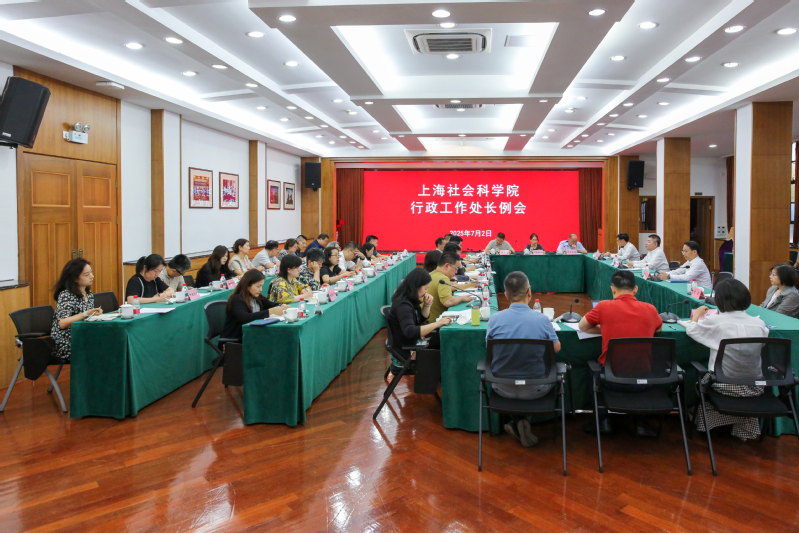 7月2日,上海社會(huì)科學(xué)院2025年第一次行政工作處長(zhǎng)例會(huì)在院部小禮堂召開。常務(wù)副院長(zhǎng)干春暉主持會(huì)議并講話,黨委副書記姚建龍,副院長(zhǎng)吳雪明、劉蕓出席會(huì)議。職能處室、研究生院有關(guān)負(fù)責(zé)人,研究所辦公室負(fù)責(zé)人參加會(huì)議。