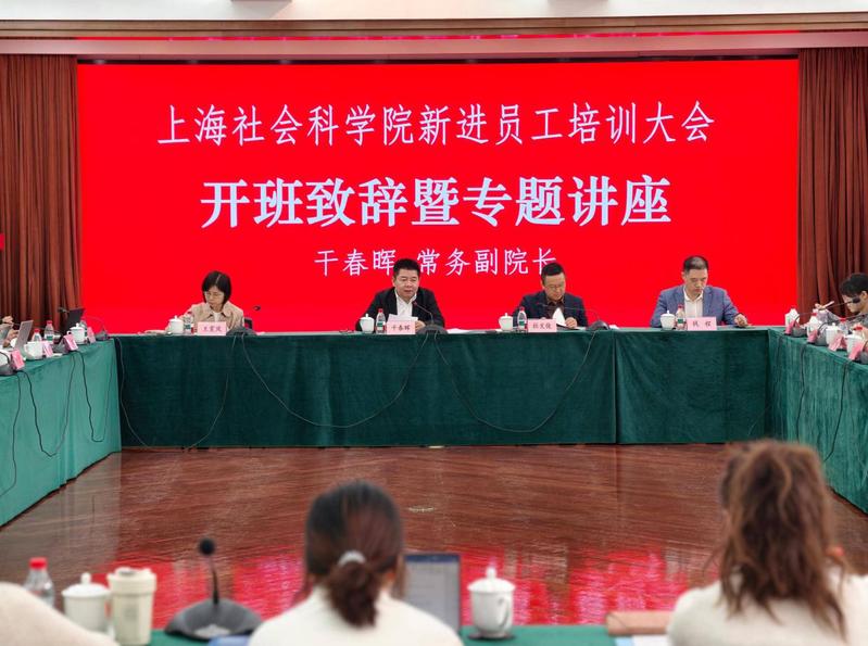 干春暉代表院黨委領(lǐng)導(dǎo)班子和全院職工,對(duì)新入職的同事表示熱烈歡迎,之后從堅(jiān)持正確的政治方向、筑牢思想根基;服務(wù)國(guó)家大局、彰顯社科擔(dān)當(dāng);找準(zhǔn)自身定位、融入團(tuán)隊(duì)發(fā)展;保持學(xué)術(shù)韌性、堅(jiān)守理論初心;掌握科研方法、提升研究能力五個(gè)方面為新進(jìn)人員做了專題講座。他指出,黨的二十屆四中全會(huì)精神為我們指明了前進(jìn)的方向,也提出了新的任務(wù)和要求,我們要切實(shí)地把會(huì)議精神落實(shí)到研究中、體現(xiàn)到行動(dòng)上。現(xiàn)在正是中國(guó)式現(xiàn)代化全面推進(jìn)的關(guān)鍵歷史節(jié)點(diǎn),正是施展才華、實(shí)現(xiàn)價(jià)值的絕佳時(shí)機(jī)。希望大家以此次培訓(xùn)為起點(diǎn),盡快融入集體,珍惜時(shí)代所賦予的歷史使命,在上海社科院的廣闊舞臺(tái)上,立大志、明大德、成大才、擔(dān)大任,以理論回應(yīng)時(shí)代,以智慧服務(wù)人民、服務(wù)國(guó)家,在構(gòu)建中國(guó)特色哲學(xué)社會(huì)科學(xué)的征程中寫下屬于自己的精彩篇章。