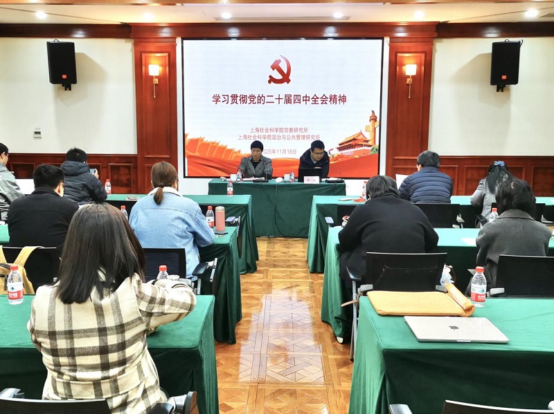 為深入學習領會、全面貫徹落實黨的二十屆四中全會精神,11月18日上午,宗教研究所黨支部與政治與公共管理研究所黨支部開展黨的二十屆四中全會精神專題聯組學習,邀請市委黨校袁峰研究員做《學習黨的二十屆四中全會精神 全面貫徹落實“十五五”規(guī)劃》的專題輔導報告。會議由宗教研究所黨支部副書記佘凌同志主持,宗教研究所及政治與公共管理研究所全體職工參與此次專題學習。